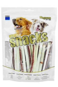 Kuřecí a rybí maso formované do měkkých proužků, které se snadno dělí na menší kousky.
