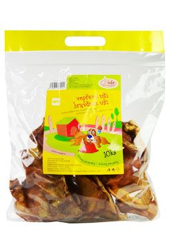 Křupavá a všemi psy vítaná lahůdka z čisté chrupavky je velmi bohatá na proteiny. Proto se vepřové ucho hojně používá jako "svačina" mezi hlavími jídly a jako odměna v rámci výchovného programu. Stejně tak jako doplněk, případně náhrada za užívané léky při potížích s klouby.