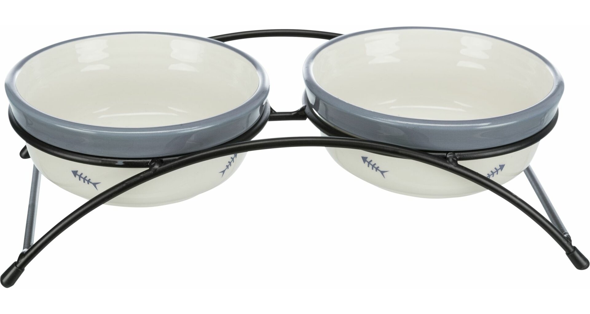 TRIXIE Set keramických misek se stojánkem 2 × 0,3 l / ø 12 cm bílá/modrošedá