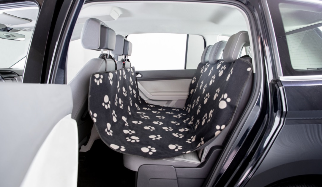TRIXIE Autopotah nylon/flís, černý s béžovými packami 1,40 x 1,45 m
