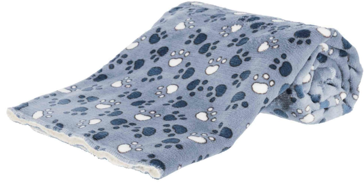 TRIXIE Deka TAMMY jemný plyš/dlouhý plyš, modrá s packami 100 x 70 cm