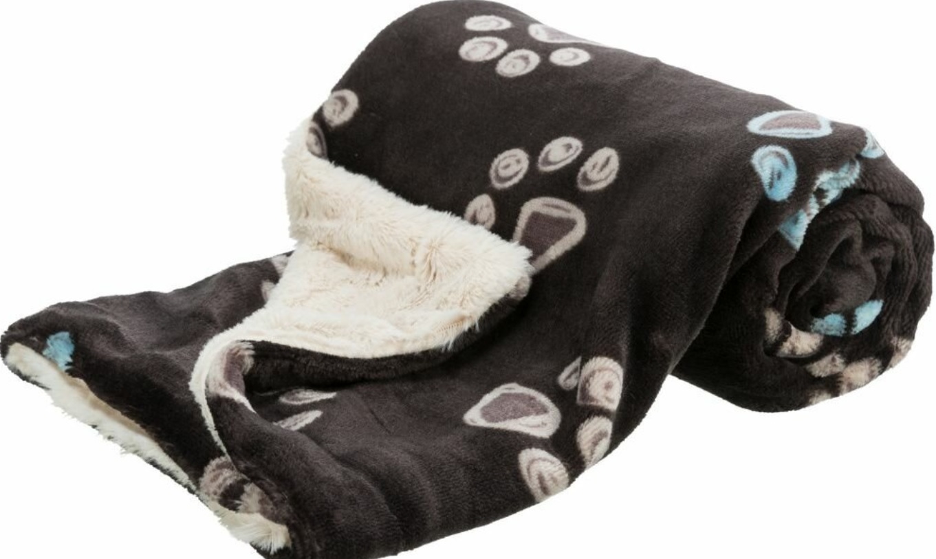 TRIXIE JIMMY plyšová hebká deka oboustranná, hnědá s tlapkami/krémová 100 x 70 cm