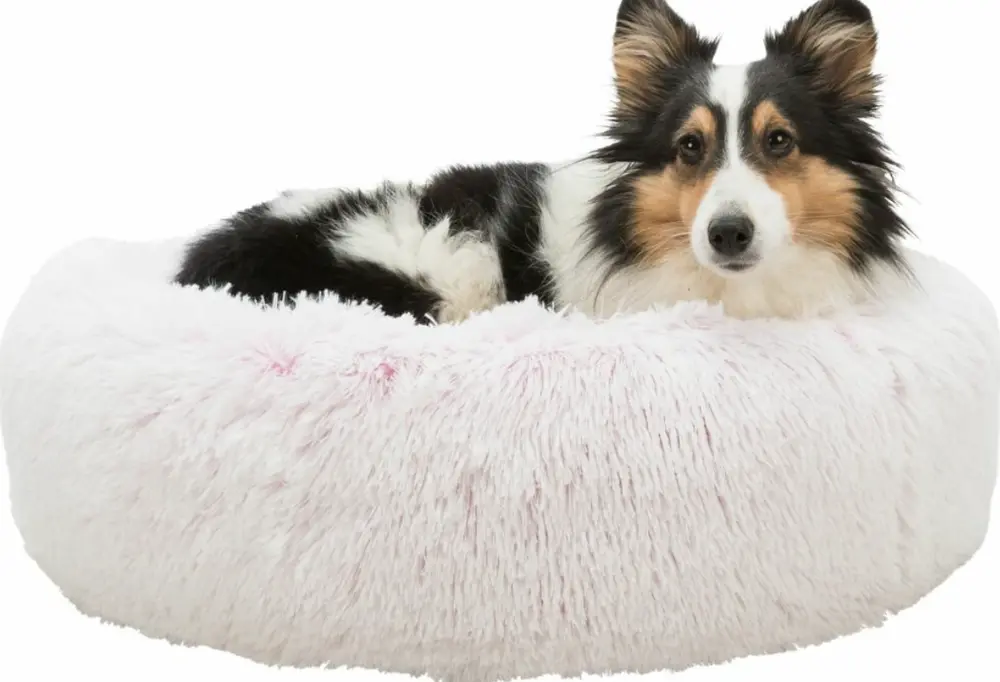TRIXIE Kulatý pelech HARVEY ø 50 cm, hebký potah s dlouhým vlasem, bílá/růžová