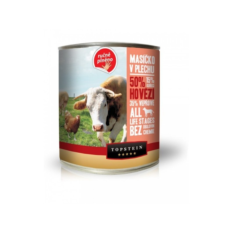 Topstein masíčko v plechu - hovězí 800gNení skladem77 Kč64 Kč bez DPH