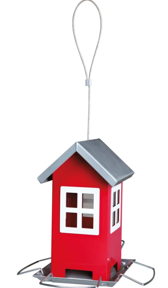 TRIXIE Zahradní krmítko kovové, barevný domeček 19x20x19 cm, - červený/stříbrná střecha