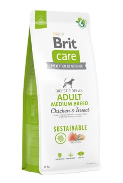 Brit Care Dog Sustainable Adult Medium Breed. Receptura z udržitelných zdrojů surovin Kuře a hmyz pro dospělé psy středních plemen (10 – 25 kg). Kompletní krmivo pro psy.