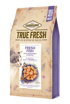 CARNILOVE TRUE FRESH FISH. Receptura bez obilovin a brambor pouze s čerstvým masem pro dospělé kočky. Vhodné pro kastrované kočky. Kompletní krmivo pro kočky.