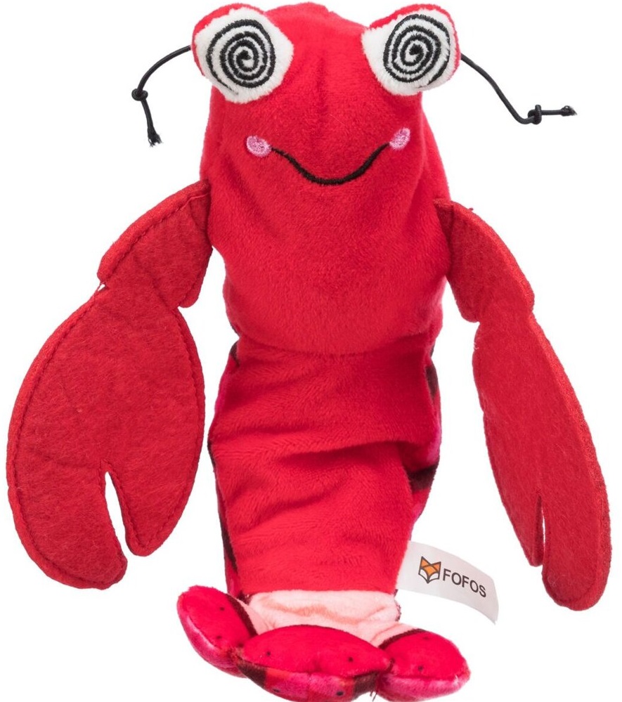 Kreveta jako živá, mrskající se, s catnipem, látka, 23 cm (RP 2,90 Kč)