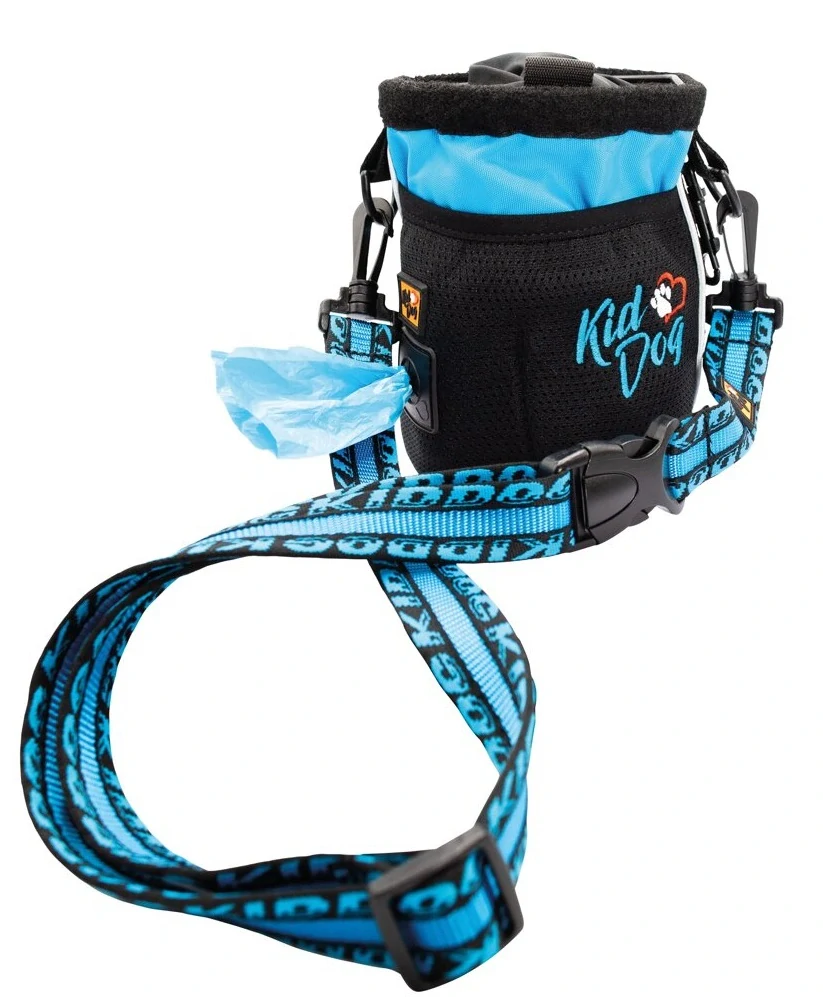 Praktický je odnímatelný nastavitelný popruh, který v maximální délce měří 125 cm a můžete jej použít k nošení pamlskovníku přes rameno, kolem pasu anebo v krajním případě popruh poslouží jako vodítko. Vyšité logo KIDDOG dodává pamlskovníku atraktivní design.