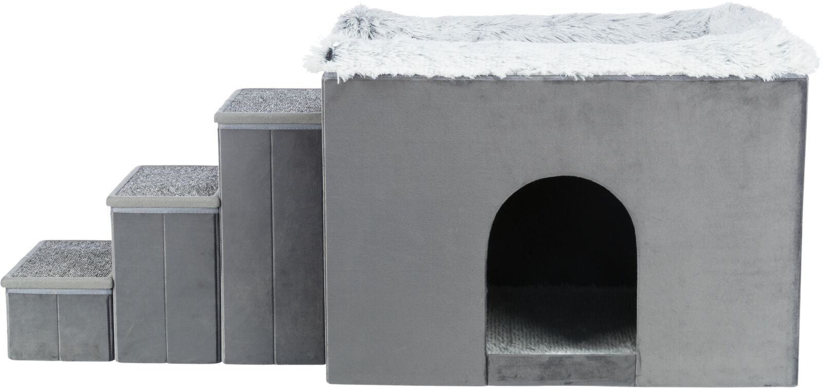 TRIXIE Interiérová boudička HARVEY se schůdky 119x47×50 cm, úložný prostor, šedá