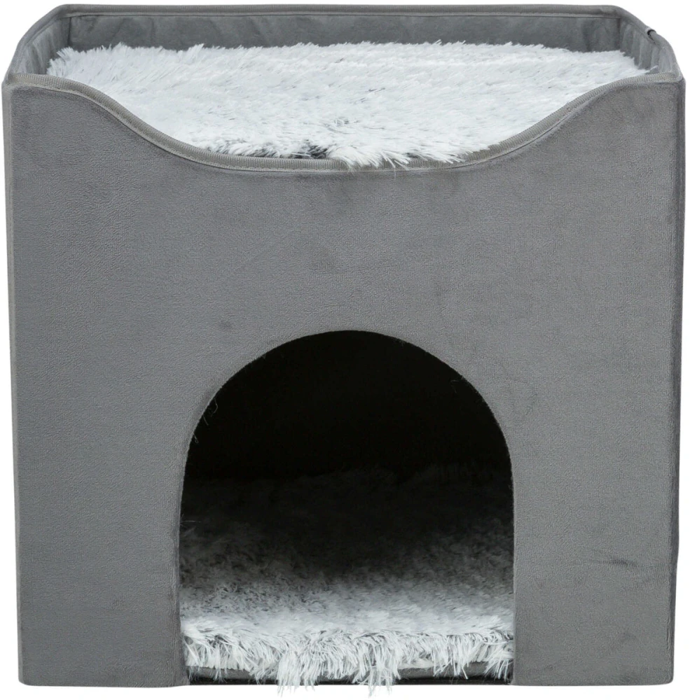 TRIXIE Kukaň HARVEY sametová se střešním lůžkem, 38 x 38 x 38 cm, šedá/bíločerná