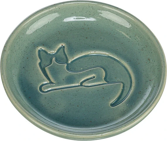 TRIXIE Miska keramická, vytlačená kočka, 0,15 l/ ⌀ 14,5 cm, zelená