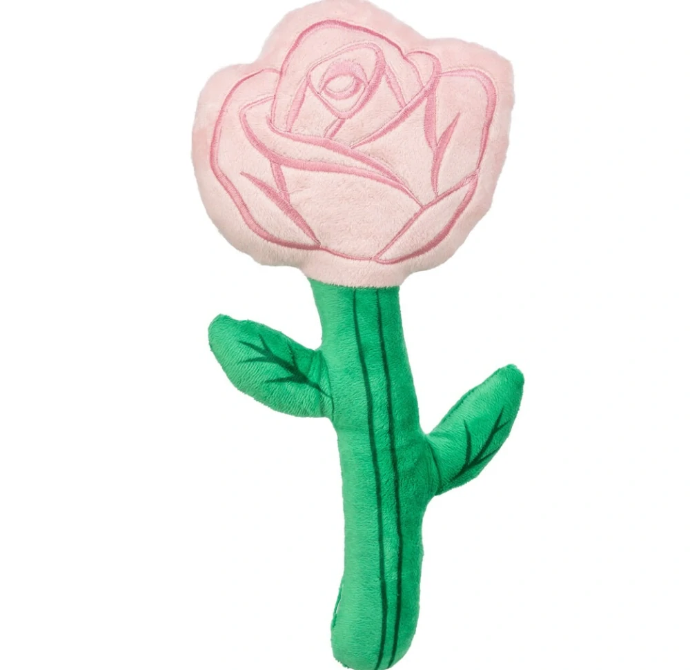 Rose VALENTINE – plyšová valentýnská růže 🌹🐶/Veselý zvěřinec / je originální hračka, která potěší každého chlupáče i jeho páníčka. Růžovo-zelený design z limitované valentýnské kolekce přinese do hraní trochu lásky navíc 💕