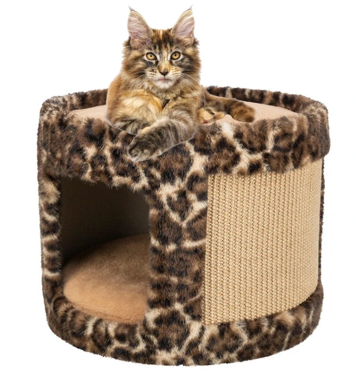 Škrabací jeskyně LEO 🐆 – ø 38 × 30 cm, hnědá / leopardí / Veselý zvěřinec /
