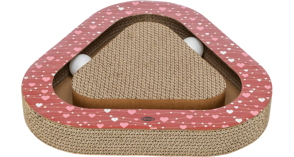 TRIXIE Škrabací karton VALENTINE triangl, s míčky a catnipem, 36 x 5 x 36/36 cm, červená - LIMITOVANÁ NABÍDKA
