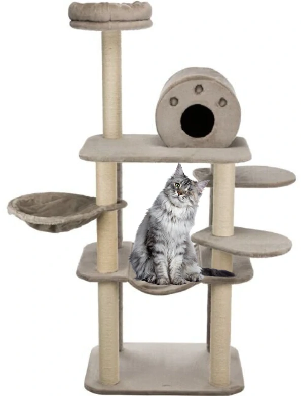 TRIXIE Škrabadlo FABIOLA, 4 sloupky, hamaka, jeskyně, 5 x podesta, 165 cm, šedá