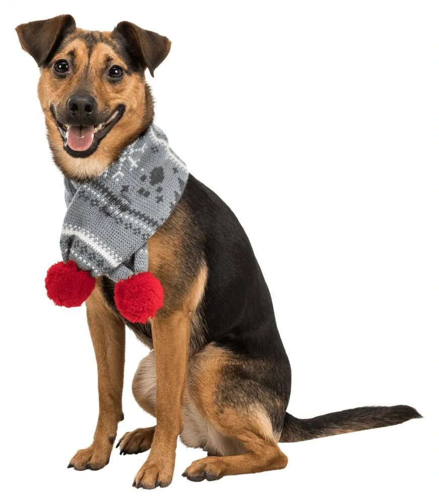 TRIXIE Vánoční šál s bambulkou, šedobílá/červená 50 cm