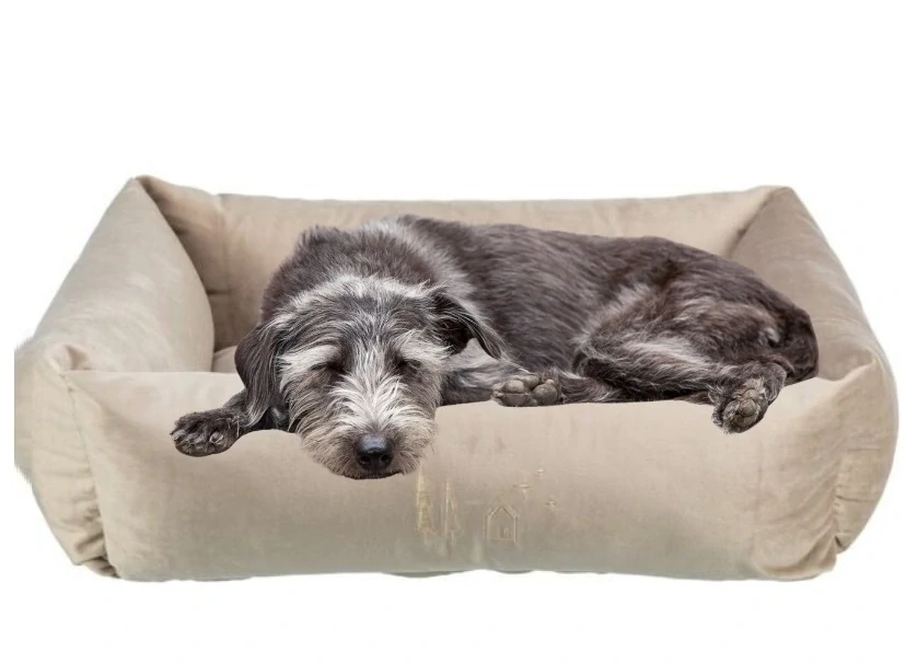 Vánoční sametové lůžko LIVIA 🎄🐶 – s výšivkou, béžové 💛