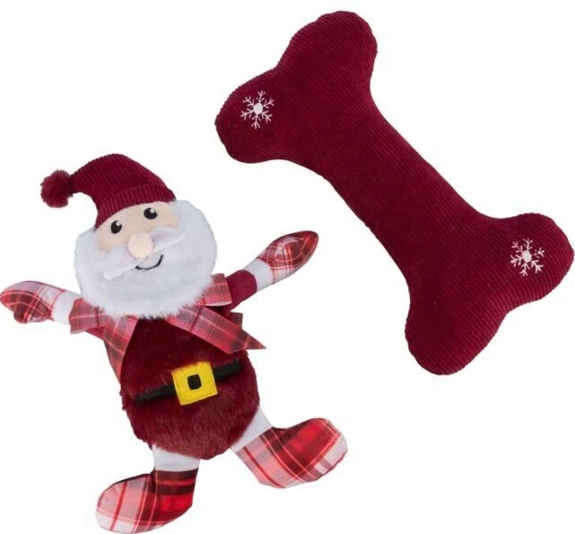 Xmas GIFT SET - vánoční dárková sada hraček pro psy (Santa, kost), 30 cm, plyš/látka je skvělým dárkem pro vašeho psa k Vánocům! Tento vánoční set hraček pro psy přináší zábavu a radost během svátečního období.