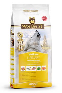 WOLFSBLUT VetLine URINARY je kompletní dietní krmivo pro dospělé psy pro podporu zdraví močových cest; může přispět k rozpuštění struvitových kamenů a snížení recidivy struvitových kamenů.
