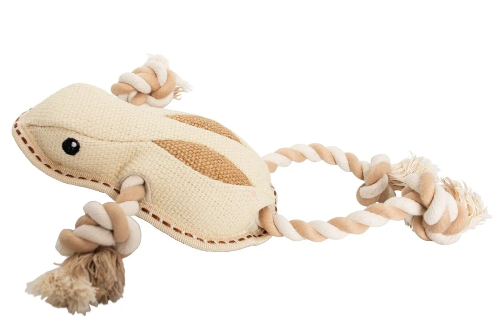 Žába na laně 33 cm, robustní jutová hračka pro psy, HIPHOP DOG, přírodní